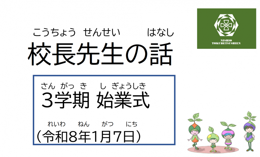 お知らせ 3学期 始業式 2026年1月13日 1月7日(水)に、3学期の始業式が行われました。 小学部と中学部の児童生徒は体育館で参加し、高等部の生徒は、教室で中継を見て参加しました。 式後、2学期に行われた大会で、優秀な成績を収めた生徒の表彰も行われました。
