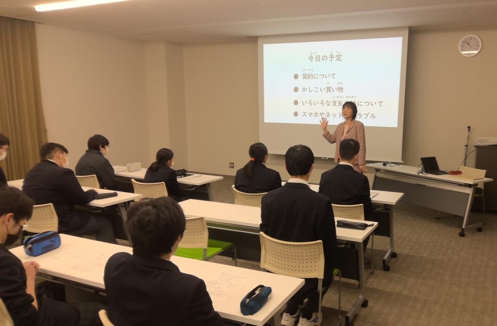 1月22日(木)に知的障害教育部門高等部3年生を対象に「かしこい消費者になるために」というテーマで、講話をしていただきました。