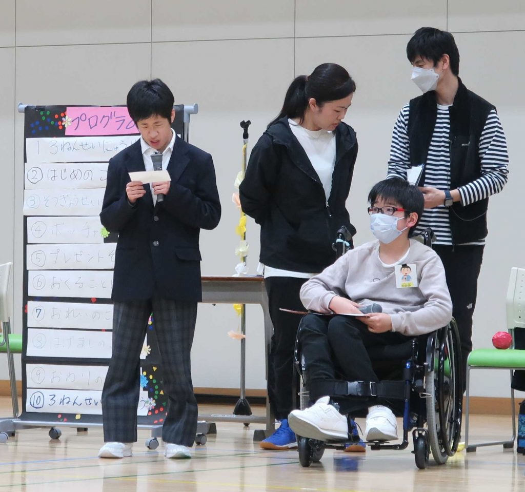 お知らせ 中学部 卒業を祝う会 2026年3月12日 2月24日(火)に、中学部の卒業を祝う会が行われました。 3年生が中学校生活で頑張ったことを発表したり、全員でボッチャをしたりしました。 たくさんの笑顔にあふれた、心温まる素敵な会になりました。